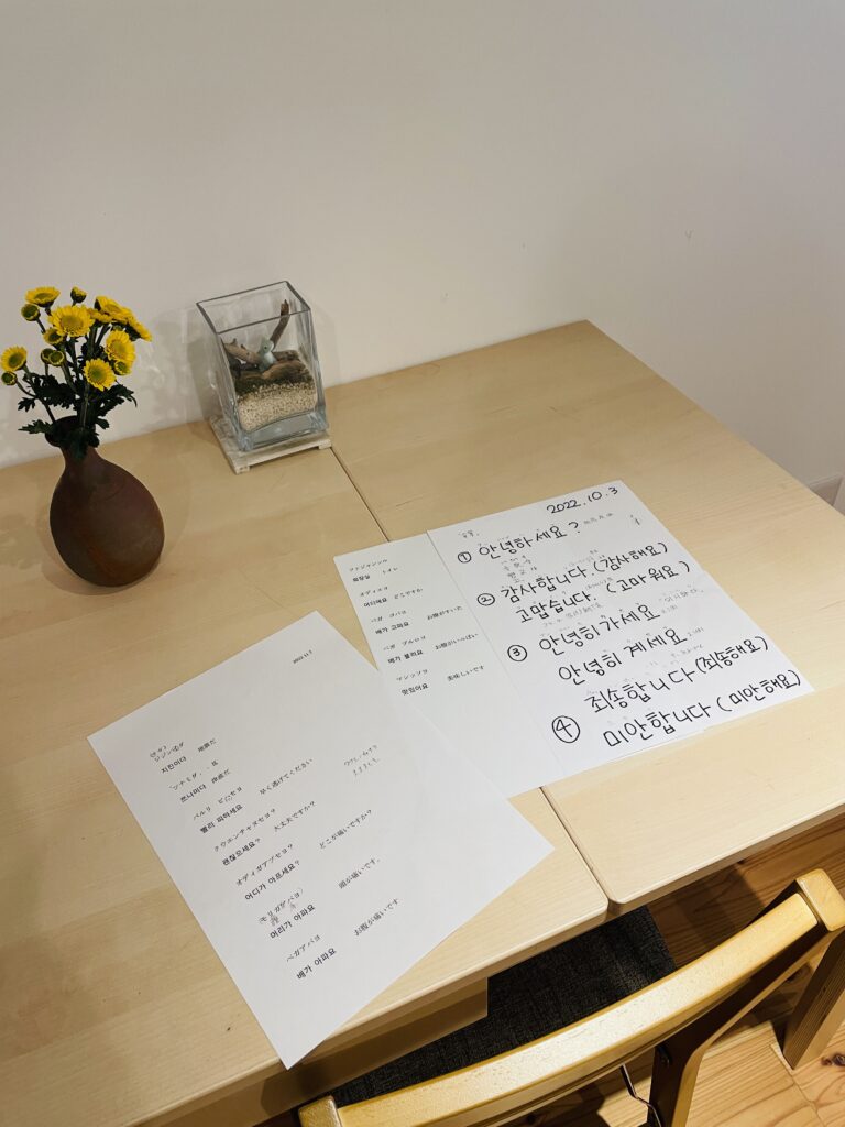 昨日も大阪公立大学より研究の為の取材見学に来ていただいたり、鶴橋から足の不自由な方にお越しいただいたり、地域包括支援センターパダの職員さんによる「使える韓国語教室」を開催していただいたりと色々な出会いや発見がありました。